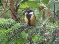 De volgende ochtend was het opeens stil. Geen piep meer uit het huisje, geen koolmees met rups meer te zien. Ik had echt even last van het ‘empty nest’-syndroom. Dan leef je zo lang zo met ze mee, en dan zeggen ze niet eens gedag. Ik had de kleintjes zo graag gezien. Helaas, daar hadden zij geen boodschap aan. We hoorden ze nog wel kwetteren aan de overkant van de straat, bij de spoordijk. En ze zijn nog een keertje teruggekomen met de familie. Als ik goed geteld heb waren ze met z’n vijven, drie jongen dus. En ook in de achtertuin zagen we opeens koolmeesouders en -kinderen op zoek naar lekkere hapjes in onze sering.